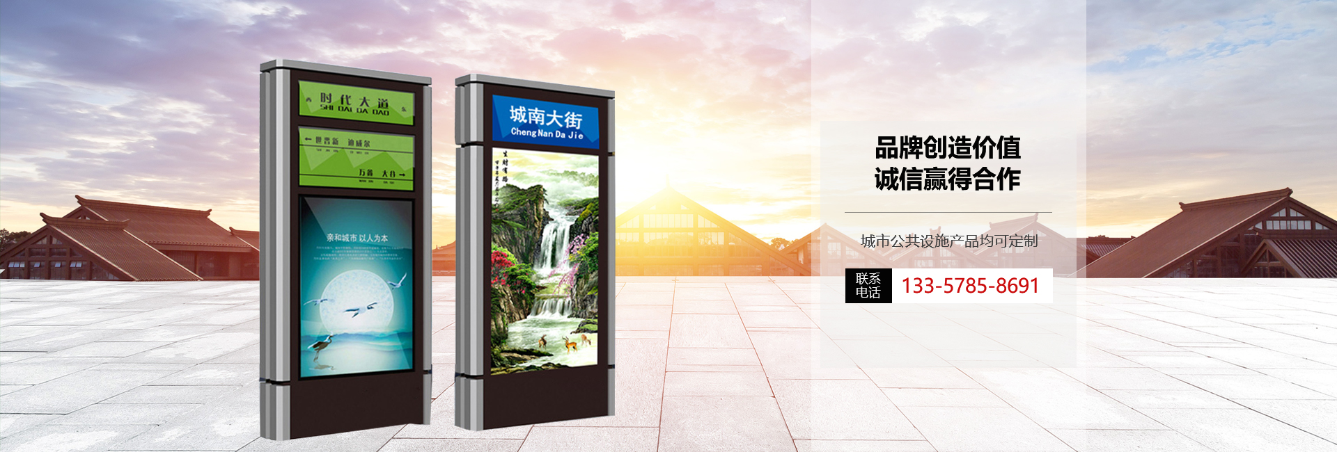專注于廣告設備的生產與研發,主要產品有公交候車亭、路名牌、滾動燈箱、廣告垃圾箱、閱報欄、滅蚊燈箱等各類廣告設備,共計15大系列,520多個型號。